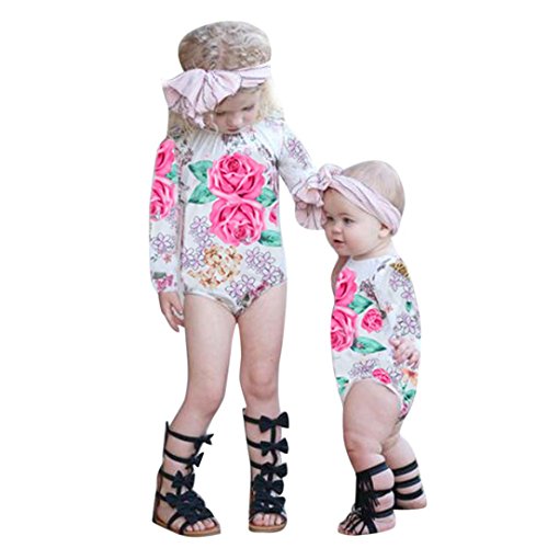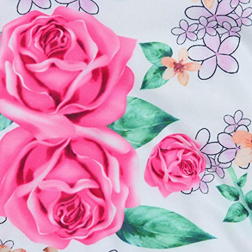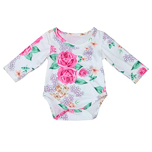 Karchi 子供オールインワン ベビー ロンパース 長袖 大花柄 ベビー連体服 サロペットパンツ 女の子用 普段着 カジュアル 可愛い 春夏 ホワイト (80)