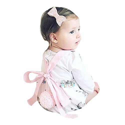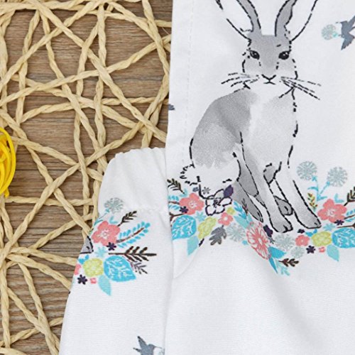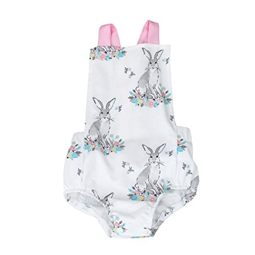 Karchi ベビー服 女の子 ロンパース 可愛い 袖無し 動物プリント うさぎちゃん カバーオール 春夏服 誕生日 お出かけ パーティー 0-24ヶ月設定 ホワイト (80)