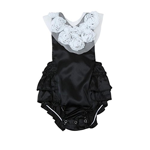 Karchi ベビー服 女の子 ロンパース 可愛い 半袖 バラ付き 無地 カバーオール 春夏服 誕生日 お出かけ パーティー 0-24ヶ月設定 ブラック (80)