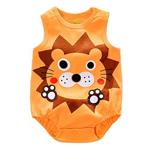 Karchi ベビー服 男女兼用 ロンパース 可愛い 半袖 漫画 動物柄 コットン100% カバーオール 春夏服 誕生日 お出かけ パーティー 0-24ヶ月設定 全5色 (59, オレンジ)