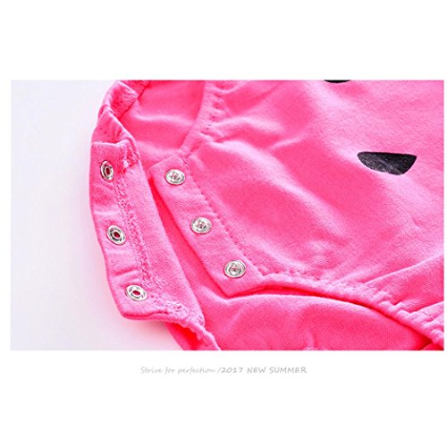 Karchi ベビー服 男女兼用 ロンパース 可愛い 半袖 漫画 動物柄 コットン100% カバーオール 春夏服 誕生日 お出かけ パーティー 0-24ヶ月設定 全5色 (80, ホット-ピンク)