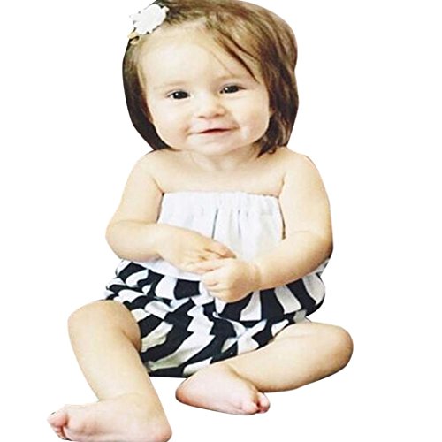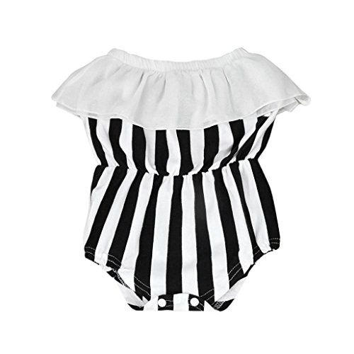 Karchi ベビー服 女の子 ロンパース 可愛い 袖無し ボーダー柄 カバーオール 春夏服 誕生日 お出かけ パーティー 0-24ヶ月設定 ブラック (90)