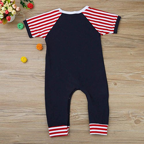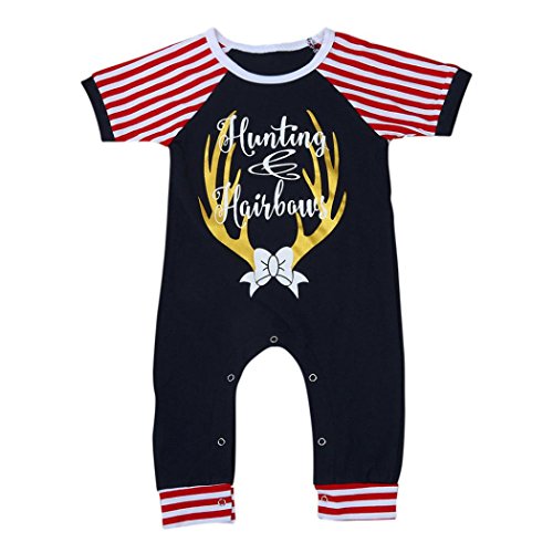 Karchi ベビー服 男女兼用 ロンパース 可愛い 動物模様 鹿プリント ボーダー柄 長袖 コットン100% カバーオール 春夏服 誕生日 お出かけ パーティー 0-24ヶ月設定 ネイビ (100)