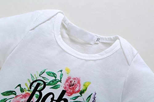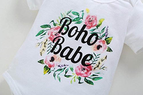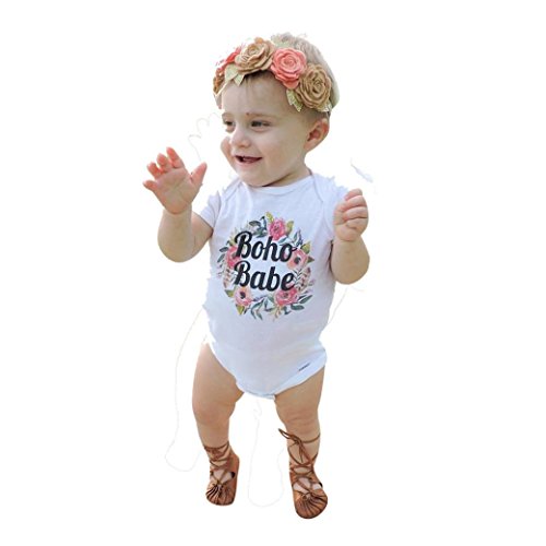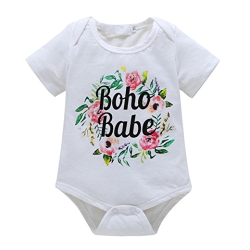 Karchi ベビー服 男女兼用 ロンパース 可愛い ”BOHO BABE” アルファベットプリント 無地 半袖 コットン100% カバーオール 春夏服 誕生日 お出かけ パーティー 0-24ヶ月設定 ホワイト (80)