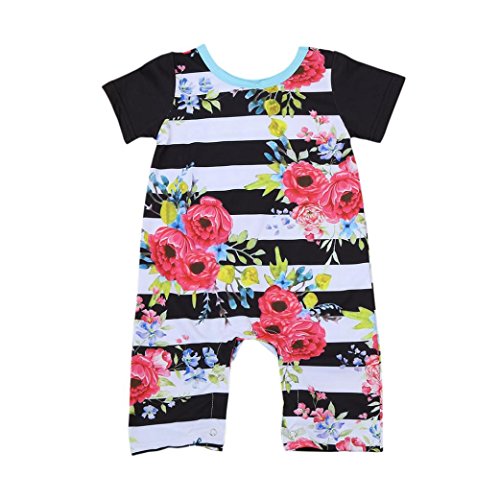 Karchi ベビー服 女の子 ロンパース 可愛い 半袖 花柄 カバーオール 春夏服 誕生日 お出かけ パーティー 0-24ヶ月設定 ブラック (110)