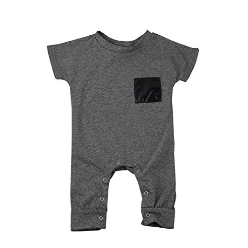 Karchi ベビー服 男の子用 ロンパース 可愛い ポケット付き 無地 半袖 コットン100% カバーオール 春夏服 誕生日 お出かけ パーティー 0-24ヶ月設定 ダークグレー (70)
