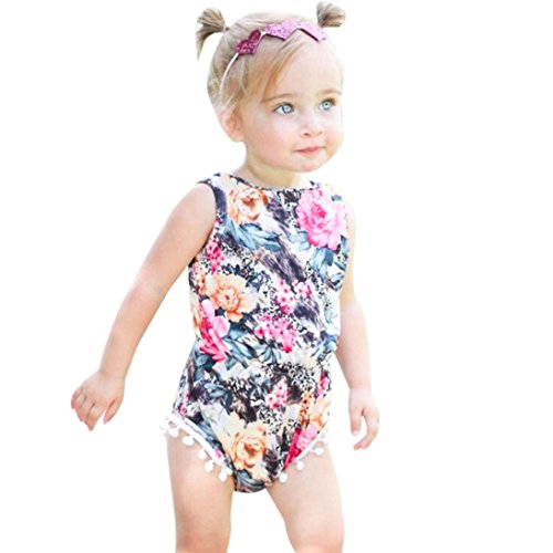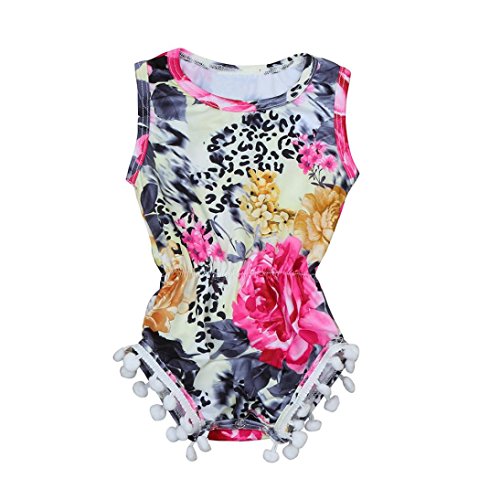 Karchi ベビー服 女の子 ロンパース 可愛い 袖無し 花柄 カバーオール 春夏服 誕生日 お出かけ パーティー 0-24ヶ月設定 ホット-ピンク (90)