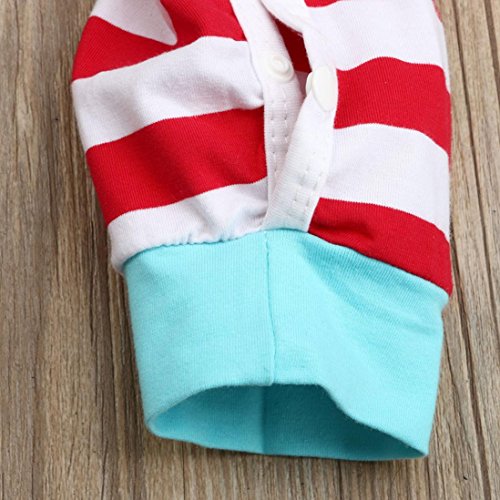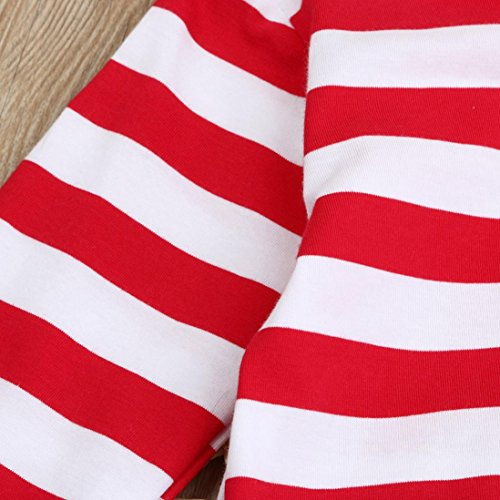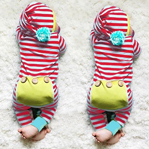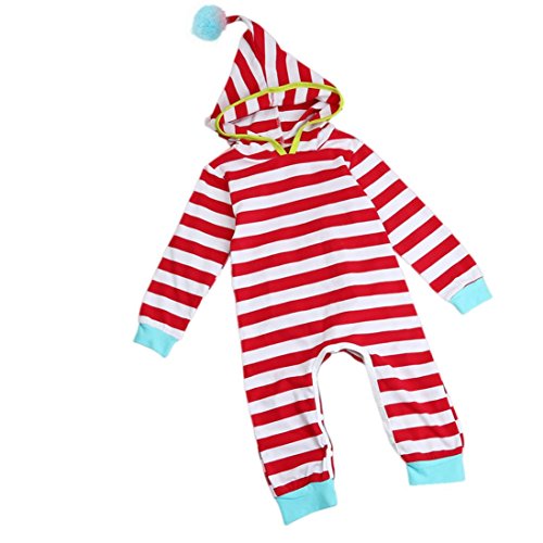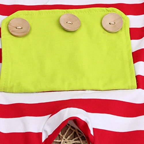 Karchi ベビー服 女の子 ロンパース 可愛い 長袖 帽子付き ボーダー柄 カバーオール 春夏服 誕生日 お出かけ パーティー 0-24ヶ月設定 レッド (100)