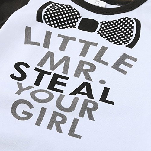 Karchi ベビー服 男の子用 ロンパース 可愛い Little MR. Steal アルファベットプリント 半袖 コットン100% カバーオール 春夏服 誕生日 お出かけ パーティー 0-24ヶ月設定 ホワイト (100)