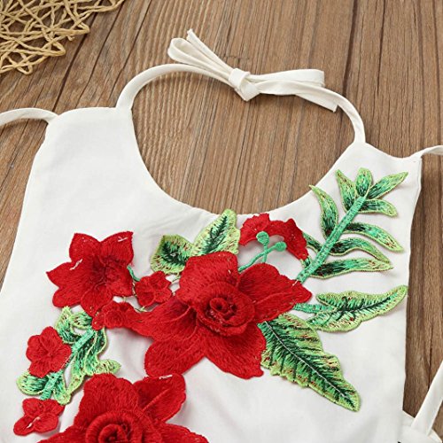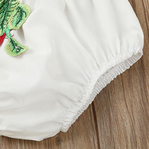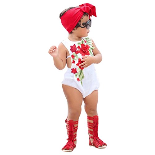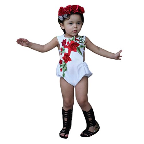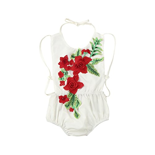 Karchi ベビー服 女の子 ロンパース 可愛い 袖無し 刺繍 バラ プリント カバーオール 春夏服 誕生日 お出かけ パーティー 0-24ヶ月設定 ホワイト (100)