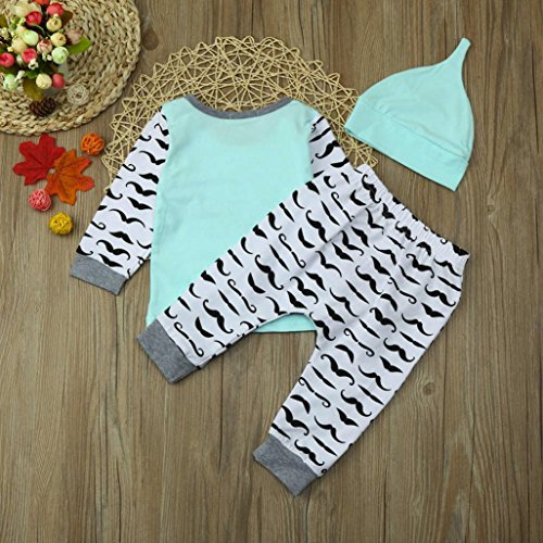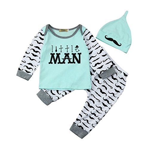 男の子 ベビー服 Karchi 3点セット (上着+パンツ+帽子)ひげ飾り 英語文字LITTLE MAN ベビー服 子供服 出産祝い 春秋 パジャマ 普段着 (80, 青い)