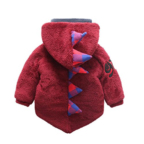 女の子 ベビー服 恐竜のデザイン Karchi 長袖 フード付き マイクロファイバー 前開け ファション 快適 柔らかい スポーツ フード付き カジュアル 上着 コート パーカー シンプル 秋冬 カバーオール 可愛い 80 90 100 110 (100, ワイン赤)