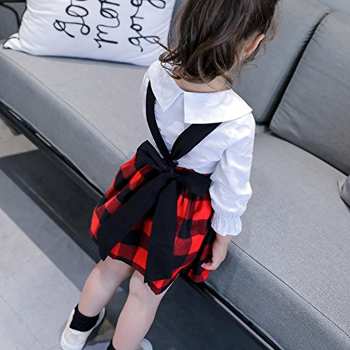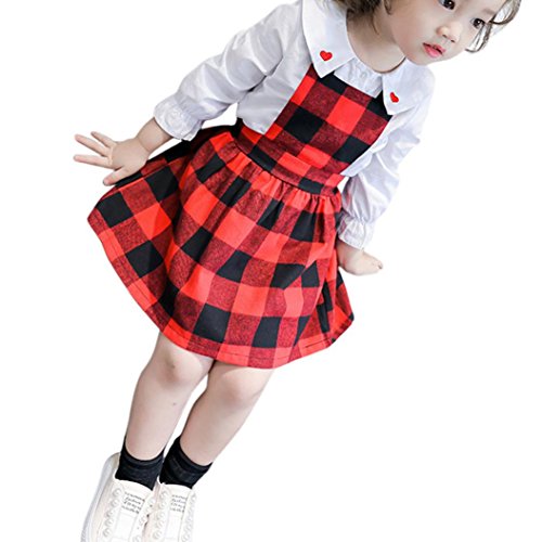 女の子 ワンピース Karchi チェック柄 子供誕生日 出産祝いプレゼント 入園式着 卒園式着 誕生日着 お出かけ着パーティー着 子供の日プレゼント 七五三着 発表会着 (100, 赤)