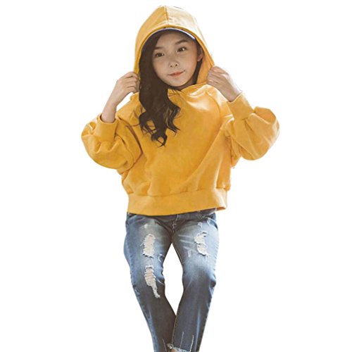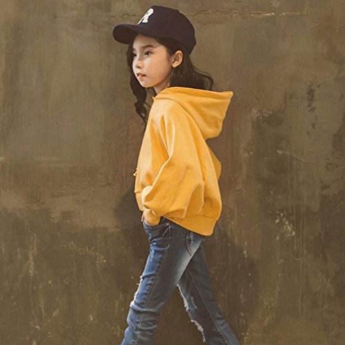 Karchi 女の子 黄色い パーカー 前開け ジッパー 春 秋 子供服 ガールズ キッズ ベビー ロング丈コート カジュアル 防寒 アウター 通学 通園 可愛い シンプル100 110 120 130 140 無地 ジャケット アウター (黄色い, 110)