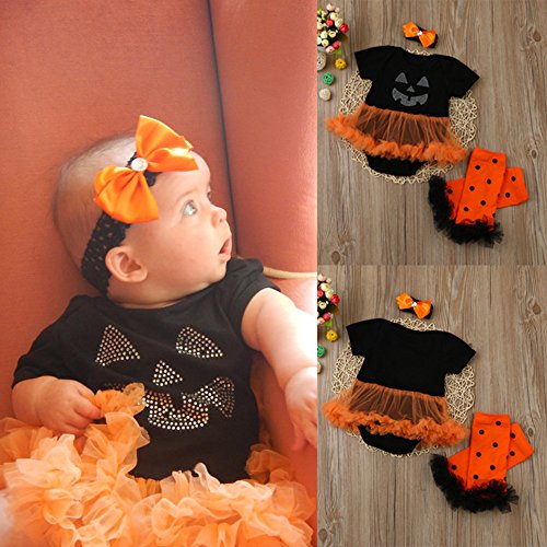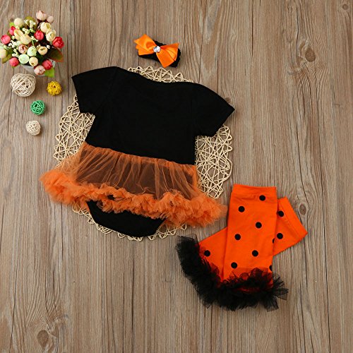 Karchi ハロウィーン衣装 新生児 赤ちゃん 女の子ツツー ロンパートップス+レッグ ウォーマー ハロウィン 服装セット (90, 黒)