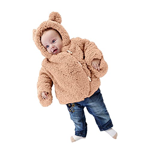 Karchi ベビー用 可愛い 人気 2017 子供服 男の子用 熊の変身服 厚手暖かい ショートコート 秋冬物 幼児 冬 ウォームドットベルト コート ジャケット (80, コーヒー)