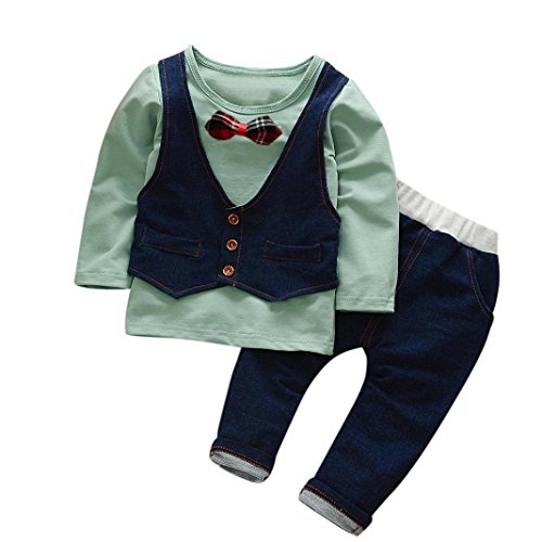 男の子 紳士服 2点セット 子供服 長袖 ベスト付き ロングスリーブTシャツ 春秋用 ズボン 入学式 入園式 卒業式 発表会 (90, グリーン)