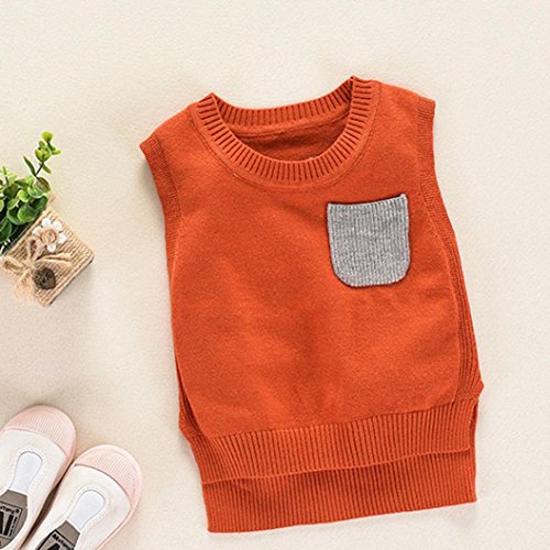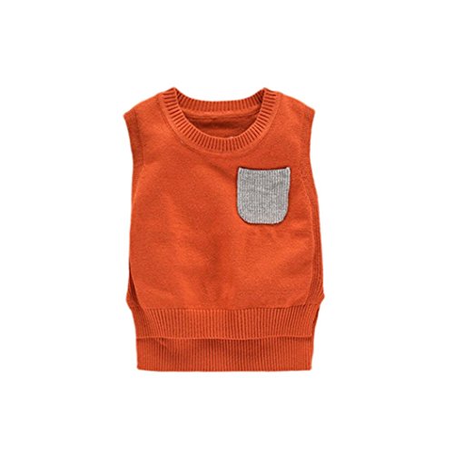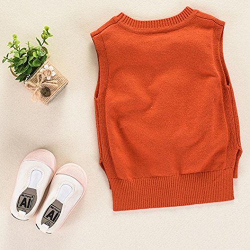 Karchi 子供服 ニット ベスト ノースリーブ 丸ネック 女の子 男の子兼用 出産祝い お誕生日プレゼント90 100 110 120 130 (90, オレンジ)