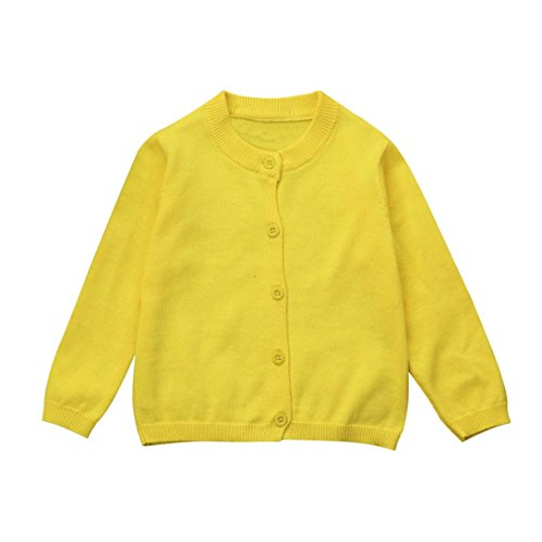 Karchi 子供服 カーディガン セーター ニット シンプル しっかり 冷房対策 無地 快適 洗練 長袖 ジュニア 学生服 肩掛け キッズ 春秋用 入学式 普段着8色選べる 80-120 (100, 黄色い)