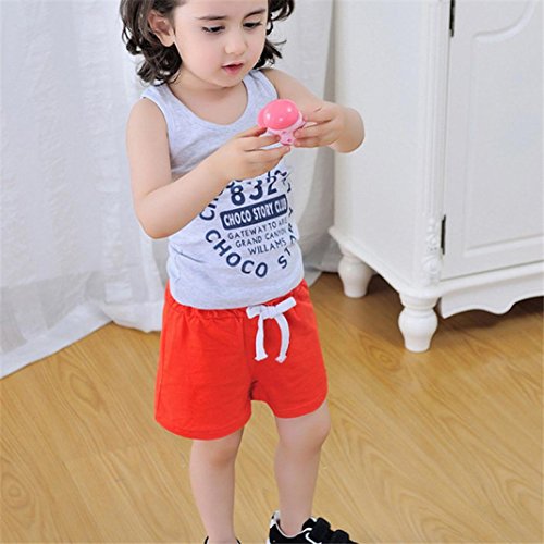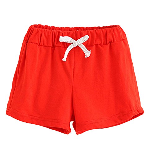 Karchi ベビー服 子ども服 子供の夏季パンツ 春夏 無地 ショートパンツ 可愛い 綿ショートパンツ 女の子 男の子兼用 出産祝い プレゼント (100, レッド)