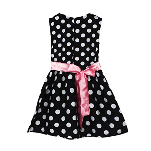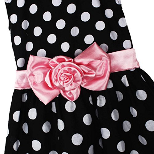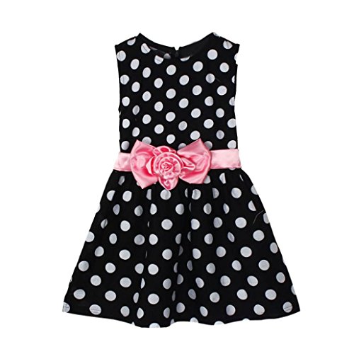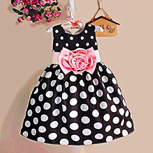 Karchi 女児子供服 女の子用服 女児用服 お姫様波点無袖ボンボンワンピース ドレス ワンピース スカート お姫様ドレス 花柄 春夏 可愛い ワンピース チュニック 洋服 ベビ用服 柔らかい おしゃれ 入園式 結婚式 発表会 七五三(ブラック) (100)