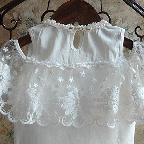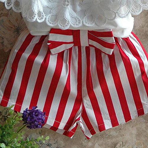 Karchi 子供服 ガールズ服 全7種のデザイン 3種2点セットと3種ワンピース 花柄 無地 肩出し レース ボーダー柄 タンクトップ Tシャツ ミニスカート ズボン ショートパンツ (13, デザイン1)