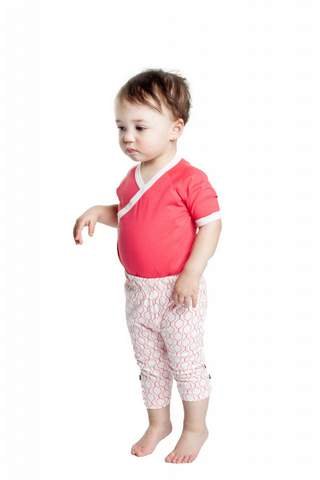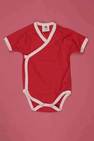 オーガニックコットン キモノボデイスーツ半袖【コーラルピンク】 (0-3カ月(50~60))