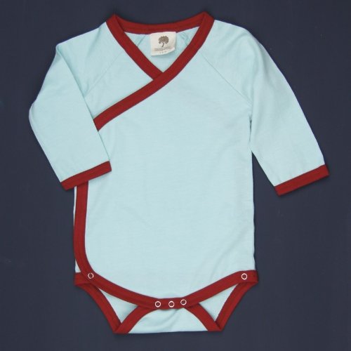 オーガニックコットン キモノボデイスーツ長袖【アクア】 (0-3ヶ月(50~60))