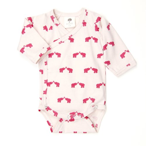 オーガニックコットン キモノボデイスーツ長袖【ピンクエレファント】 (0-3ヶ月(50~60cm))