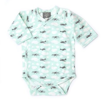 オーガニックコットン ベビー服 キモノボデイスーツ長袖 飛行機 エアープレイン (6-12ヶ月(70~75cm))