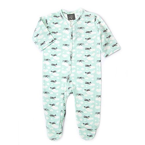 オーガニックコットン ベビー服 足袋付きカバーオール 飛行機 エアープレイン (3-6ヶ月(60~70cm))