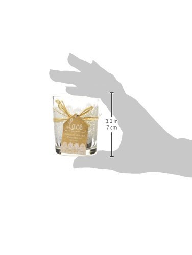 A wisp.A swirl.A knot.A space.The vintage charm of handmade lace.Tied with a few strands of natural raffia, this lacy glass tealight holder has a nostalgic look and adding candle glow to lace makes the room and smiles light up.Features and facts: glass tealight holder with lace pattern, raffia accent and coordinated hang tag.Tealight holder measures 7cm h x 5.7cm in diameter.Sold in sets of four.