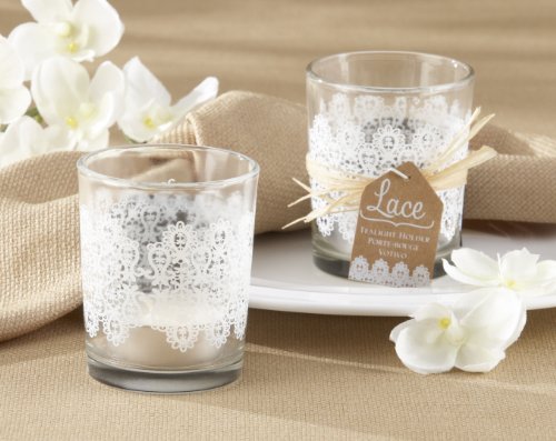 Kate Aspen Set of 4 Lace Frosted-Glass Tealight Holder by Kateaspen