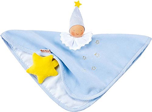Soft and comforting, this adorable Organic Towel Doll in light blue is perfect on its own, but also designed to complement other toys within the Kathe Kruse "Waldorf" collection. The elegant features of this design are truly timeless and appeal to an enduring aesthetic. Featuring a soft, simple and beautifully patterned design, this blue Waldorf Towel Doll is made with excellence out of sustainability sourced cotton polyester. Perfect as a take along buddy for the little one in your life, this soft lovey is sure to comfort and enchant. From trips to the park, to playtime in the house, this lovable doll comes to the rescue as the perfect blanket for other stuffed animals, as a makeshift puppet, and so much more. The soft cozy design helps to stimulate development of child's senses and cognitive recognition of touch and sensation. The fabric is entirely machine washable is designed to endure and complement your child's play from infancy throughout childhood. Kathe Kruse products have been made in Germany since 1911. Each product is lovingly made and designed to stimulate children through early stages of development, while providing cherished keepsakes for your family. All Kathe Kruse products sold in North America meet or exceed all applicable safety standards.
