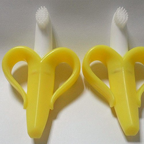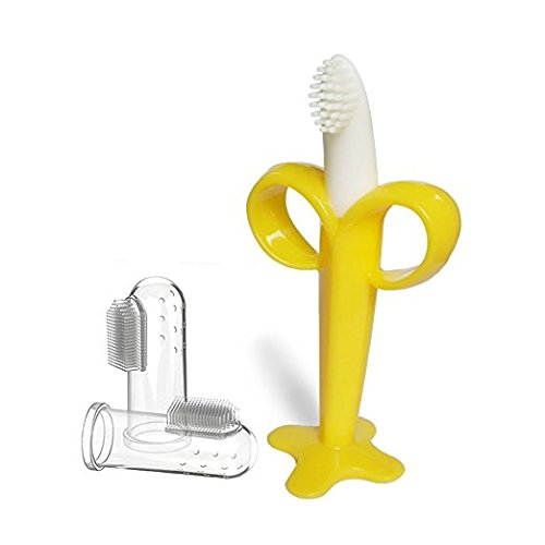 ベビー歯ブラシとTeether、3パック:バナナ歯ブラシ+シリコン乳児トレーニングフィンガー歯ブラシ収納ケース付き | Baby Toothbrush and Teether, 3 in Pack: Banana toothbrush + Silicone Infant Training Finger toothbrush with Storage Case