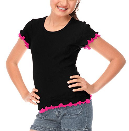 彼女が彼の話同様に甘美、当社お客様のプリンセスにたまらないかわいいレタスエッジ半袖トップ。コントラストのあるレタスエッジの色が一部のポップをあなたのワードローブを与え、Zing。