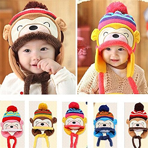子供用品 選べる5色 お猿さん ニット帽子 ベビー キッズ 赤ちゃん 子供用 女の子 男の子 かわいい 防寒 秋冬 冬
