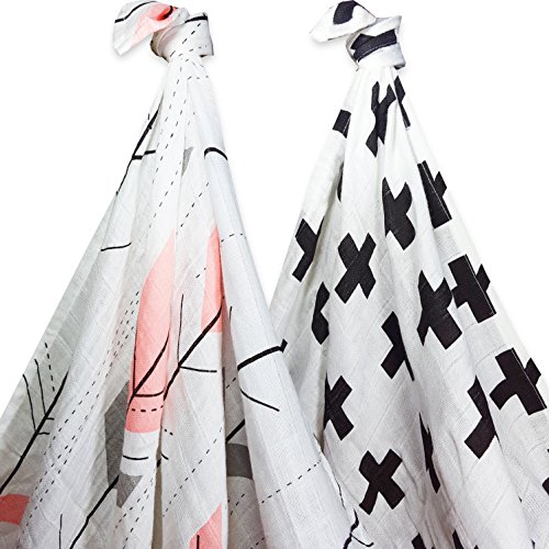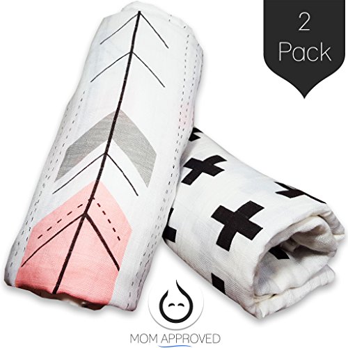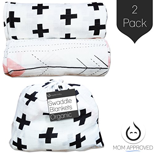 Kaydee Baby 100% Organic Muslin Cotton Swaddle Baby Blanket Set of 2 - 47x47 Inch Large Unisex Swaddling Blankets (Swiss Cross and Pink Arrows) - Perfect Shower Gift for Boys and for Girls by Kaydee Baby