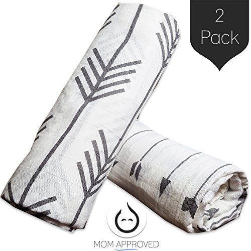 Kaydee Baby 100% Organic Muslin Cotton Swaddle Baby Blanket Set of 2 - 47x47 Inch Large Unisex Swaddling Blankets (Grey Arrows) - Perfect Shower Gift for Boys and for Girls by Kaydee Baby