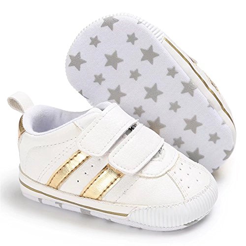 Kayiyasu ベビーシューズ キッズスニーカー 男の子 女の子 ファーストシューズ 赤ちゃん靴 歩き始め 可愛い 019-hlxl-03(12cm ホワイト&ゴールド )