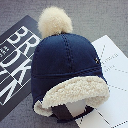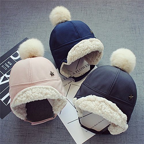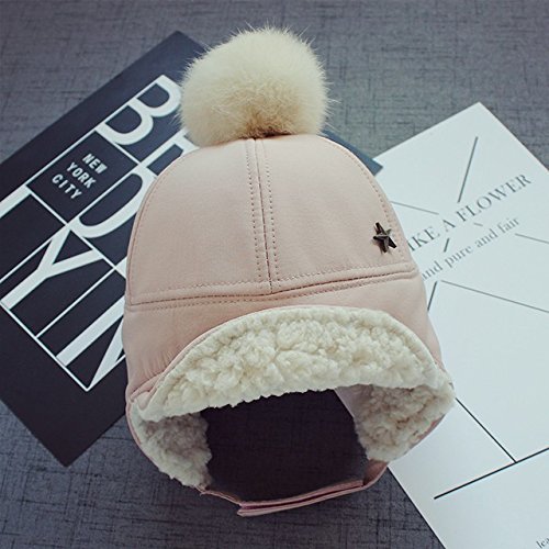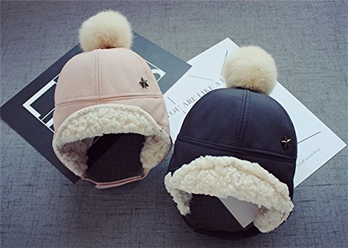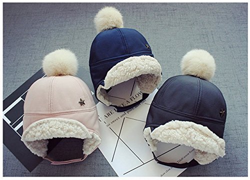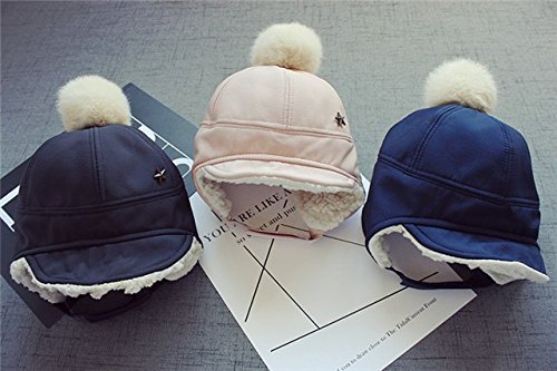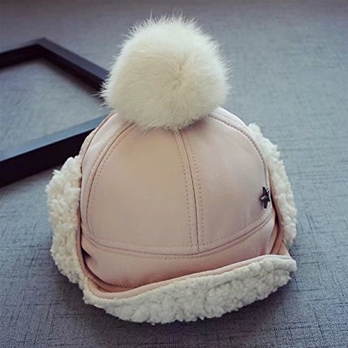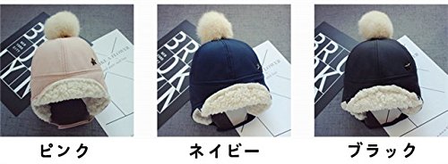 Kayiyasu ベビー帽子 子ども用キャップ 裏起毛 耳あて付き 裏ボア ポンポン付き 裏ファー 耳カバー もこもこ 男女兼用 キッズロシア帽 フライトキャップ 021-yezz-022(46-50cm ピンク )