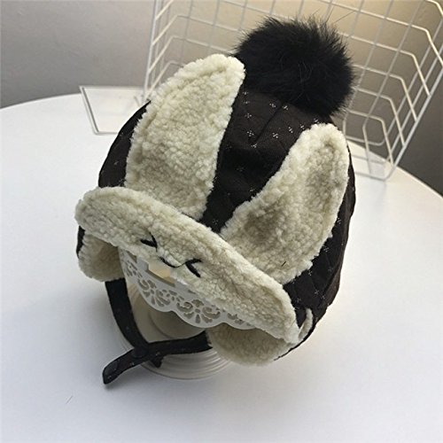 Kayiyasu ベビー帽子 子ども用キャップ 耳あて付き 裏ボア ポンポン付き 耳カバー 2way 防寒帽子 飛行帽 キッズロシア帽 フライトキャップ 021-yezz-025(46-48cm コーヒー )