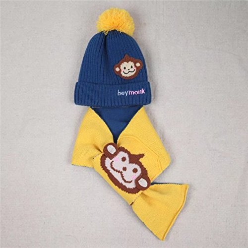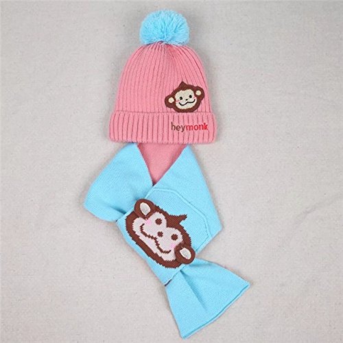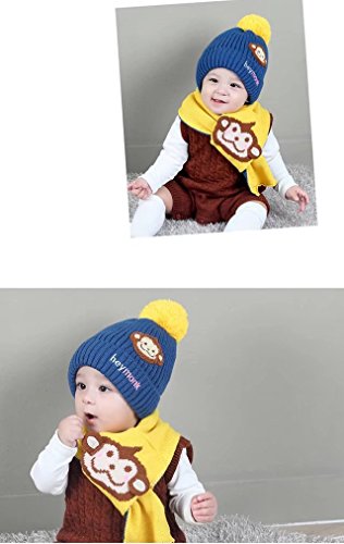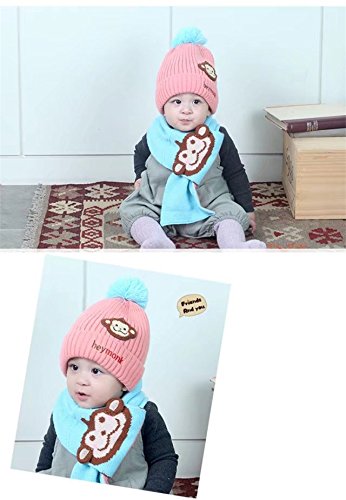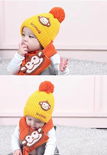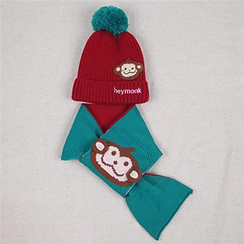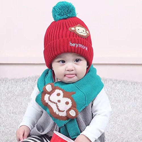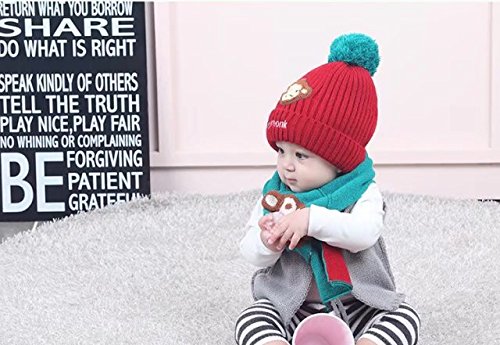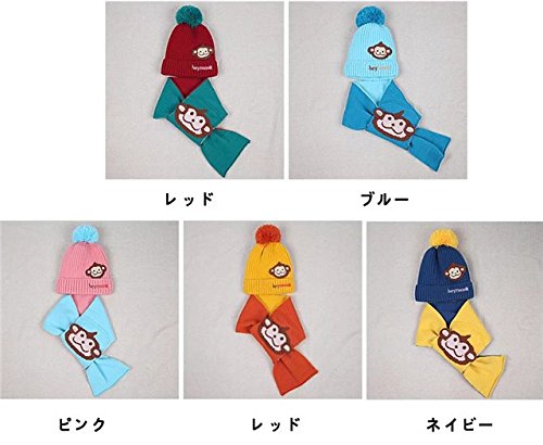Kayiyasu ベビー帽子 キッズニット帽 子ども用キャップ マフラー付き ポンポン付き 防寒帽子 耳カバー 赤ちゃん帽子 2点セット 男女兼用 021-yezz-128(46-50cm レッド )