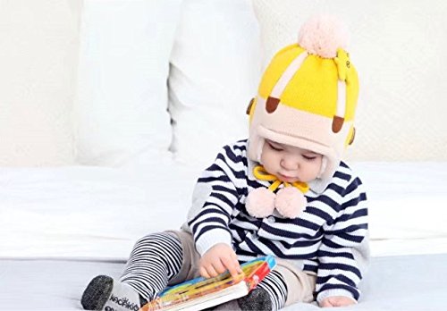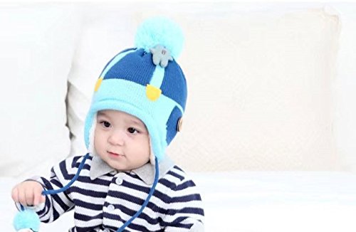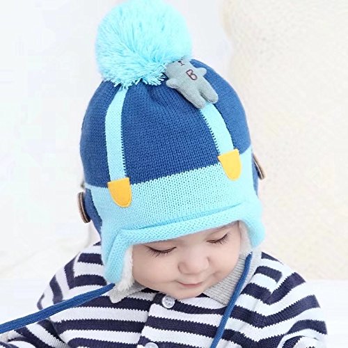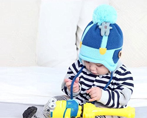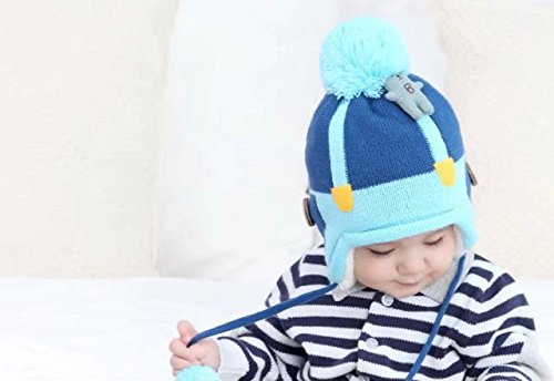 Kayiyasu キッズニット帽 子どもニットキャップ 裏起毛 裏ボア カワイイ ポンポン付き 裏ファー 耳カバー もこもこ 男女兼用 カットソー 021-yezz-020(44-52cm ネイビー )
