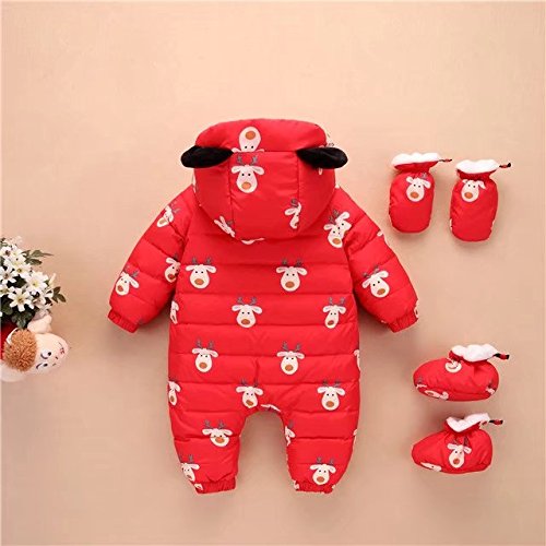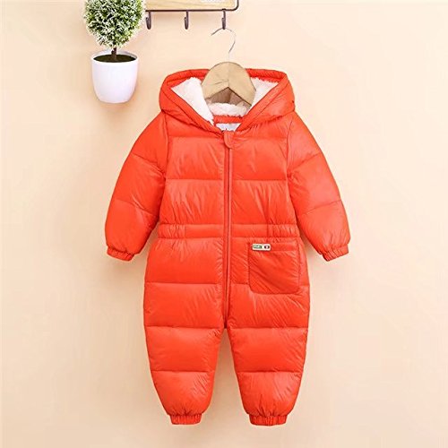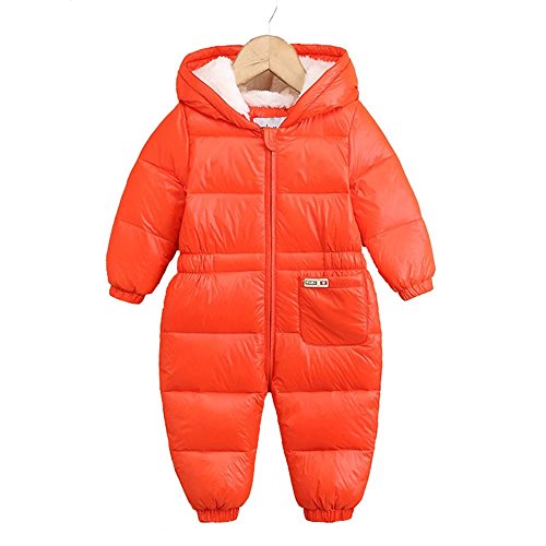 Kayiyasu ジャンプスーツ ベビー 冬服 ロンパース 子どもダウンコート アウター カバーオール オーバーオール フード付き 80%ダウン 防寒保温 019-bbxx-8705(80cm オレンジ )