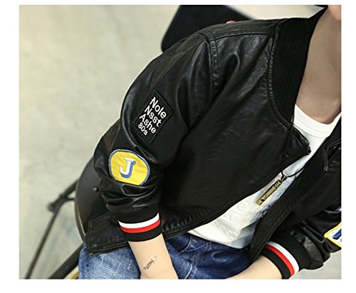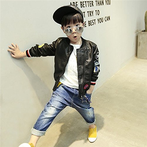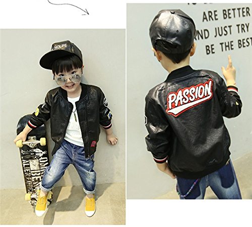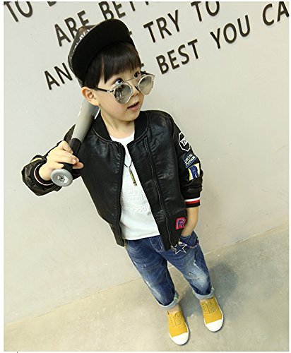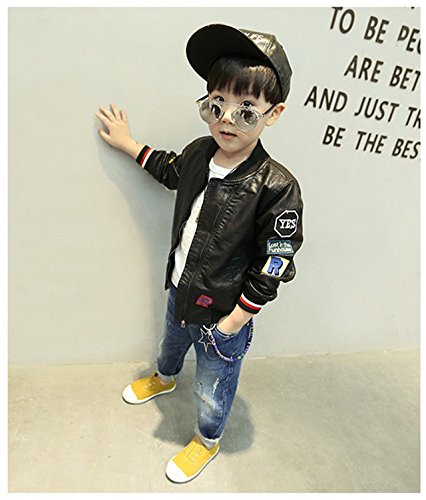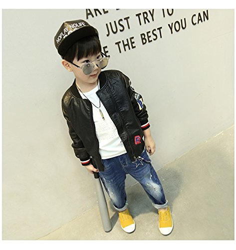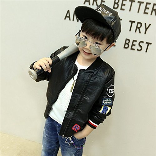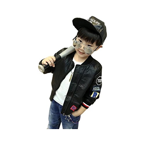 Kayiyasu カイヤス キッズレザージャケット 子どもライダースジャケット 子供革ジャン 男の子スタジャン 男児スタジアムジャンパー ボーイズ革ジャケット 皮コート アウター 021-sqfs-004(120cm ブラック )