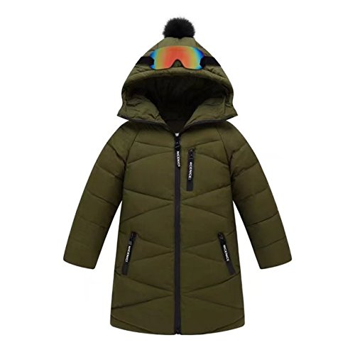 Kayiyasu キッズダウンコート 男の子ダウンジャケット おしゃれ 子どもダウンジャケット ロングダウンコート フード付き 厚くボーイズコート ボーイズジャケットbbxx-002-3071(120cm アーミーグリーン )