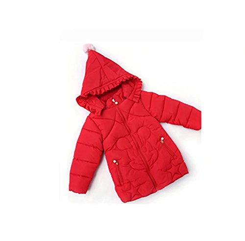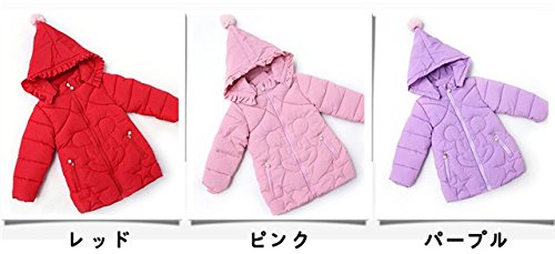Kayiyasu カイヤス キッズダウンコート 子供ダウンジャケット 女の子中綿コート 子どもダウンコート ガールズ フード付きダウンジャケット 厚手 ロング丈 021-cyfz-011-1(90cm レッド )