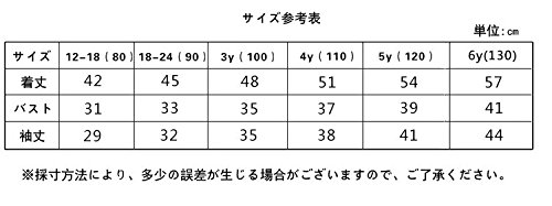- サイズ:S M L XL 12-18(80cm) 18-24(90cm) 3Y(100cm) 4Y(110cm) 5Y(120cm)