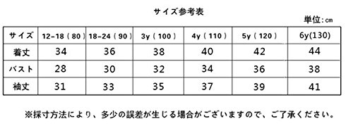 サイズ:12-18(80cm) 18-24(90cm) 3Y(100cm) 4Y(110cm) 5Y(120cm) 6Y(130cm)